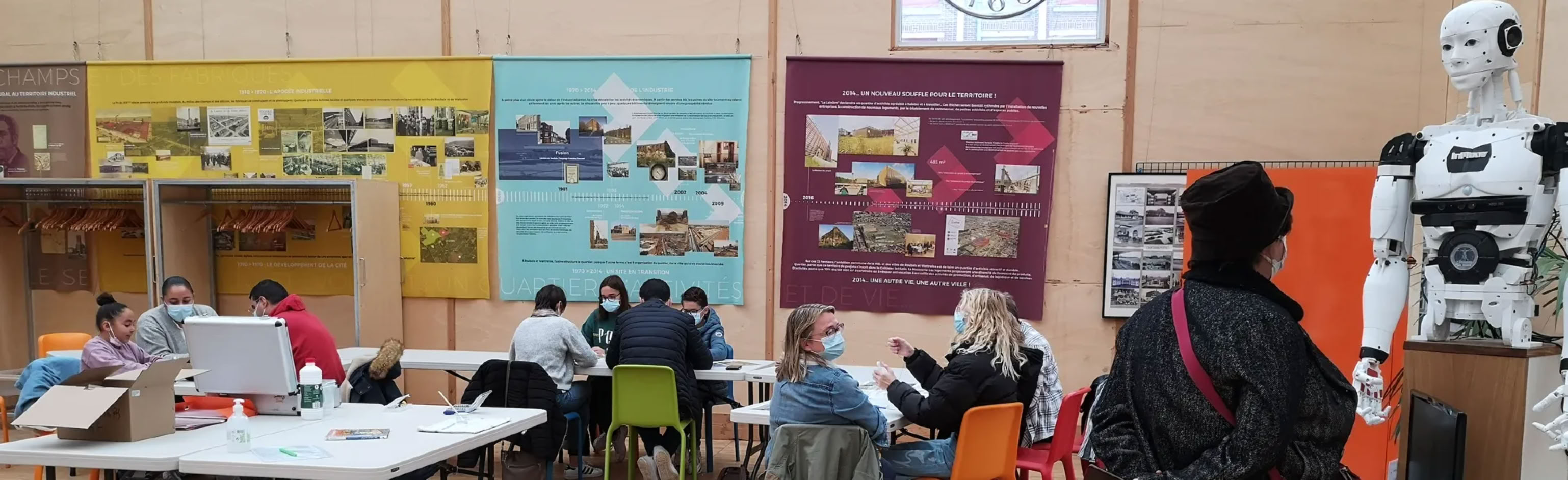 Ludique et pédagogique avec robots en action dont certains manipulables par le public