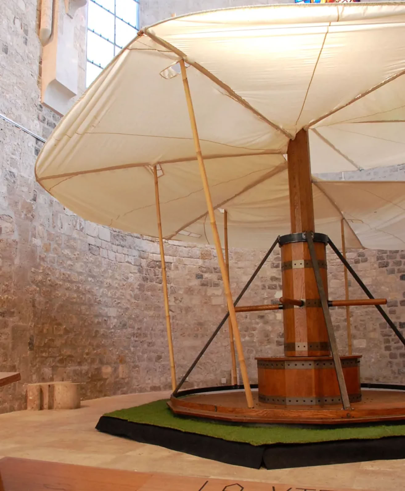 Sa réalisation est un projet labellisé par la région Centre - Val de Loire pour le 500ème anniversaire de la mort du génie de la Renaissance. Il résulte de la collaboration entre l’école d’ingénieurs Polytech Orléans, la Scuola di Ingegneria di Firenze, le Lycée professionnel Jean Lurçat de Fleury-les-Aubrais et le Centre de Formation des Apprentis en ébénisterie d’Orléans-Métropole. Cette machine de 850kg et de 5,5 mètres de diamètre se met en rotation puis s’élève jusqu’à une hauteur pouvant atteindre 7 mètres.